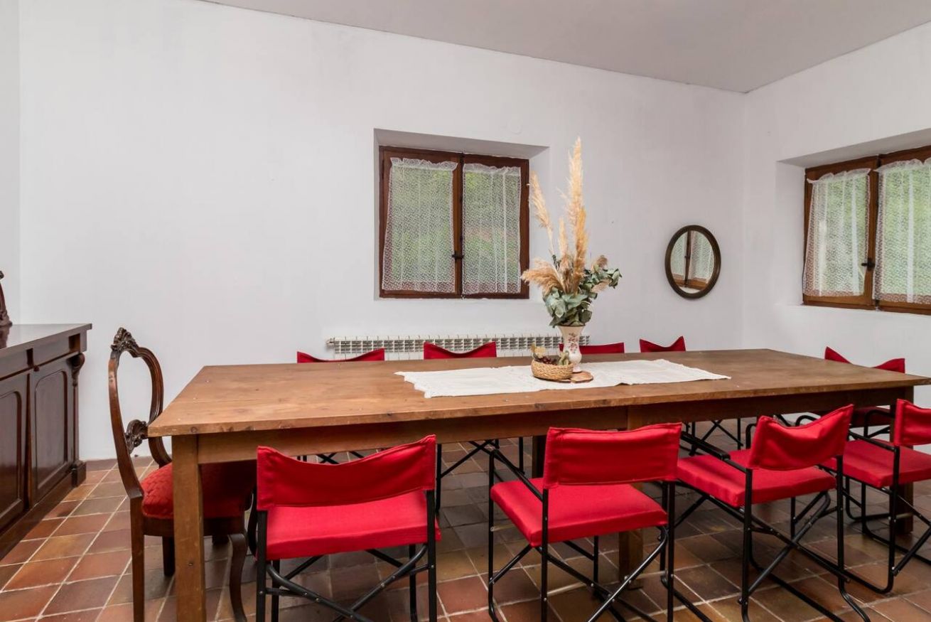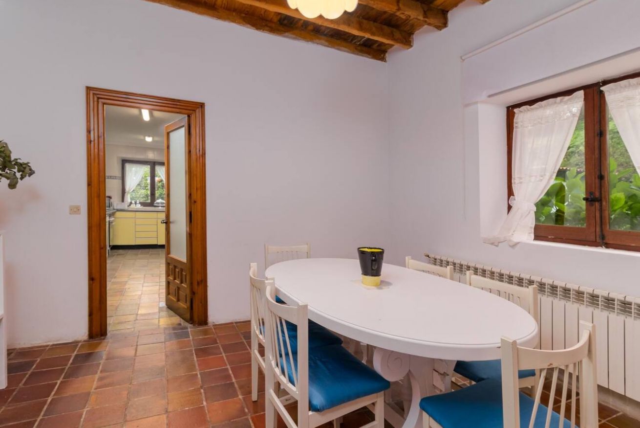 La casa cuenta con un gran salón, un comedor amplio y una sala extra en la planta superior, ideal como zona de descanso o de reunión. Todo ello repartido en estancias luminosas, bien ventiladas y con capacidad suficiente para que cada huésped tenga su propio espacio.