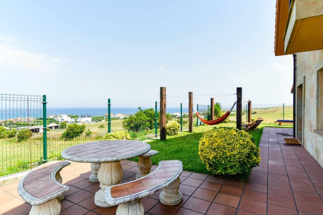 La casa está rodeada de un precioso jardín desde donde disfrutar de las maravillosas vistas. Cuenta con un cenador, una hamaca y barbacoa.
