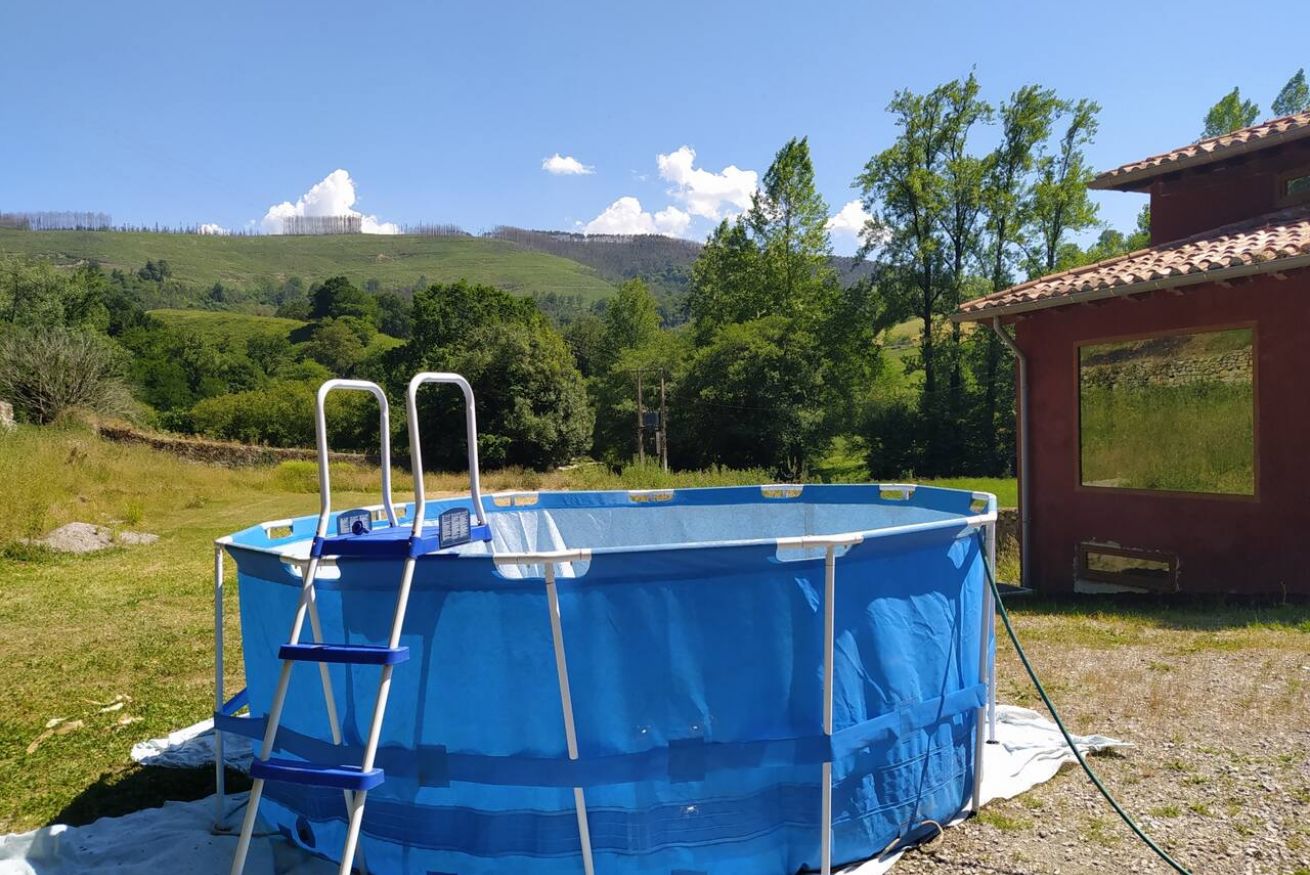 En el exterior hay instalada una canasta de baloncesto y una piscina portátil de 3,66x99cm de diámetro y altura.