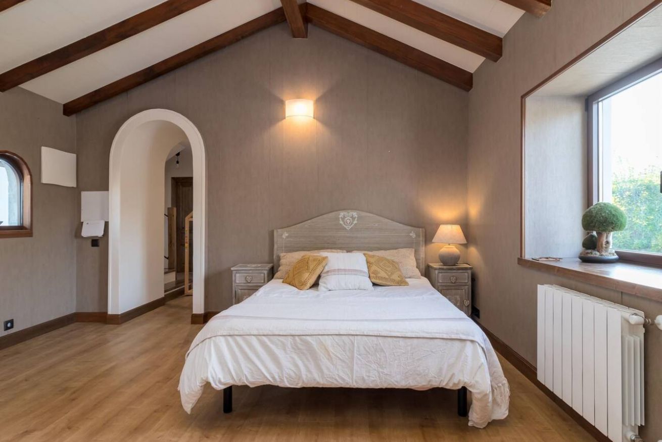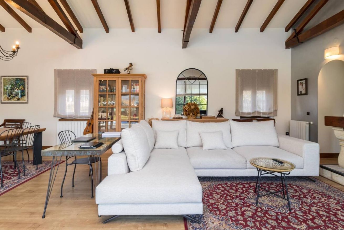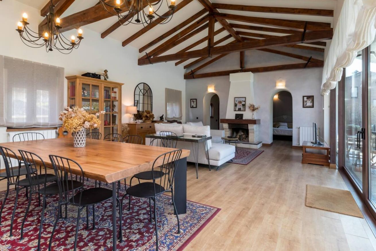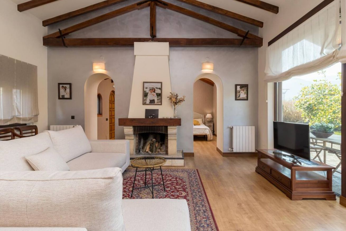 En el interior, quedará impresionado/a por la nueva decoración y los acabados de alta calidad en cada rincón. La villa cuenta con amplias zonas comunes, incluyendo un salón con una cocina totalmente equipada y una acogedora chimenea para las noches más frescas. Este espacio es perfecto para disfrutar de una deliciosa comida o simplemente relajarse en sus cómodos sofás.